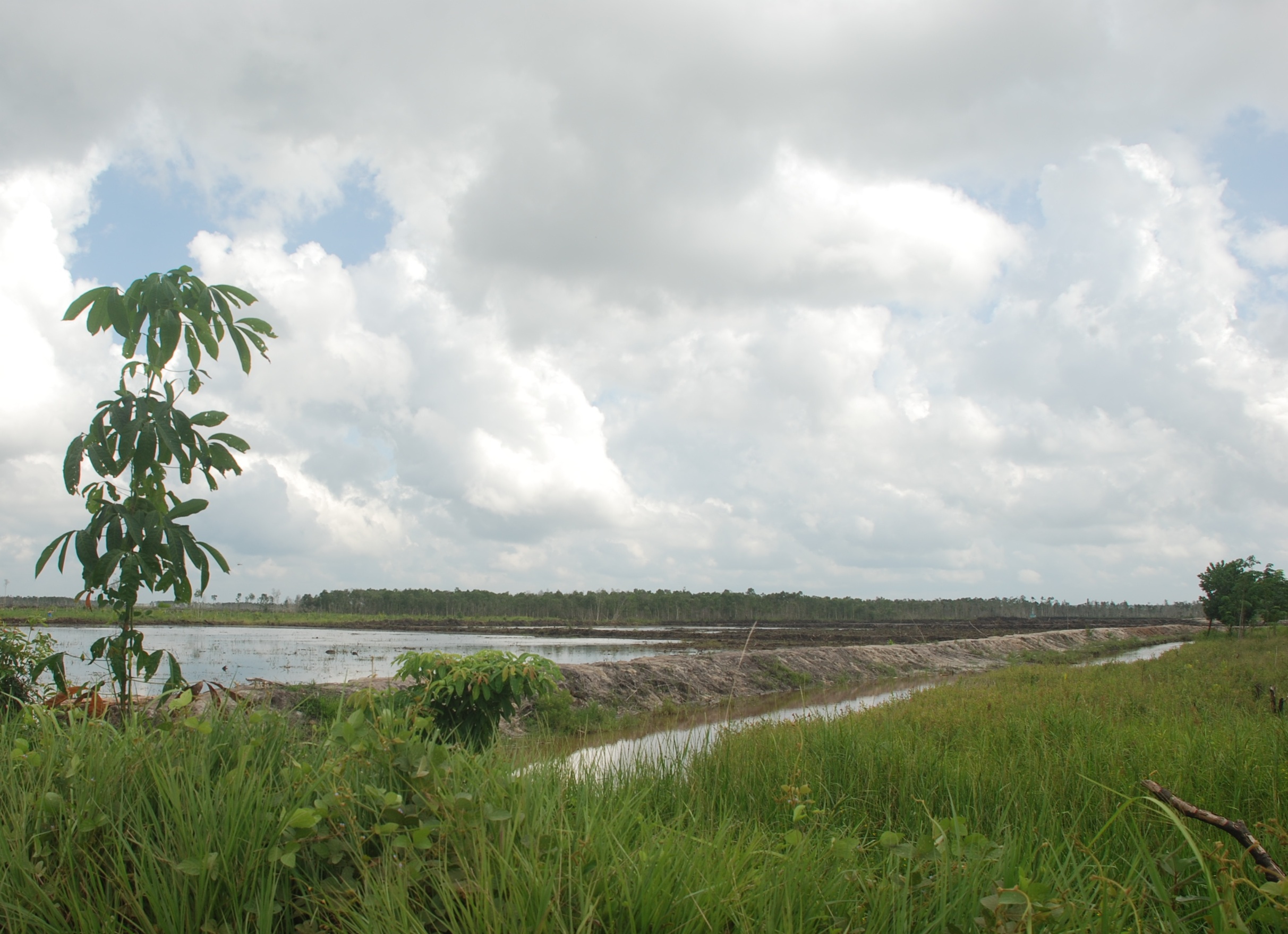 Yang menghibur, hamparan gambut yang selama ini terbakar tampak mulai dihijaukan rumputan liar dan pohon gelam. Tidak ada aktifitas persawahan sonor maupun perkebunan sawit di lahan terbakar tersebut. Beberapa tower pemantau kebakaran berdiri tegak di hamparan lahan gambut tersebut. Bongkahan kayu yang sudah mengarang akibat terbakar pada tahun 2015 lalu terendam genangan air.