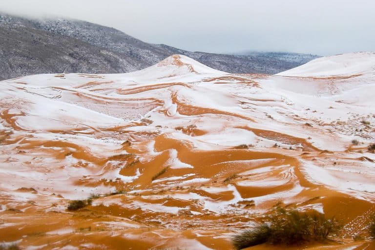 Peristiwa Langka… Salju Turun di Gurun Sahara