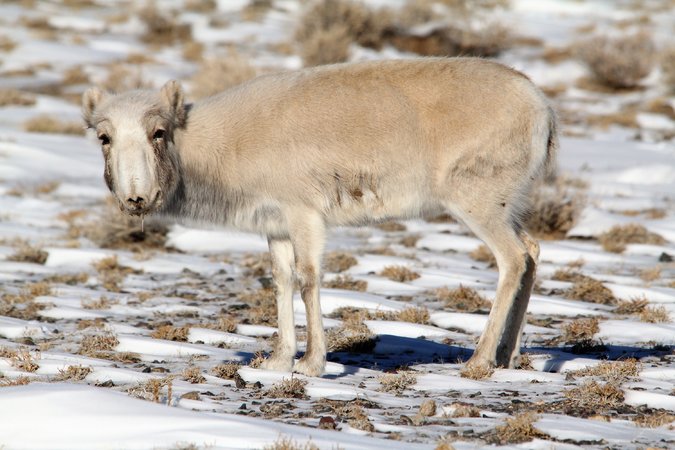 Antelop Saiga di Mongolia adalah spesies yang terancam punah. Populasi hewan yang mudah dikenali dari hidungnya ini, turun drastis dalam beberapa tahun terakhir, disebabkan penyakit. Kematian massal seperti ini, juga terjadi di Kazakhstan pada 2015, sekitar 120 ribu individu Saiga mati dalam waktu kurang dari dua minggu.