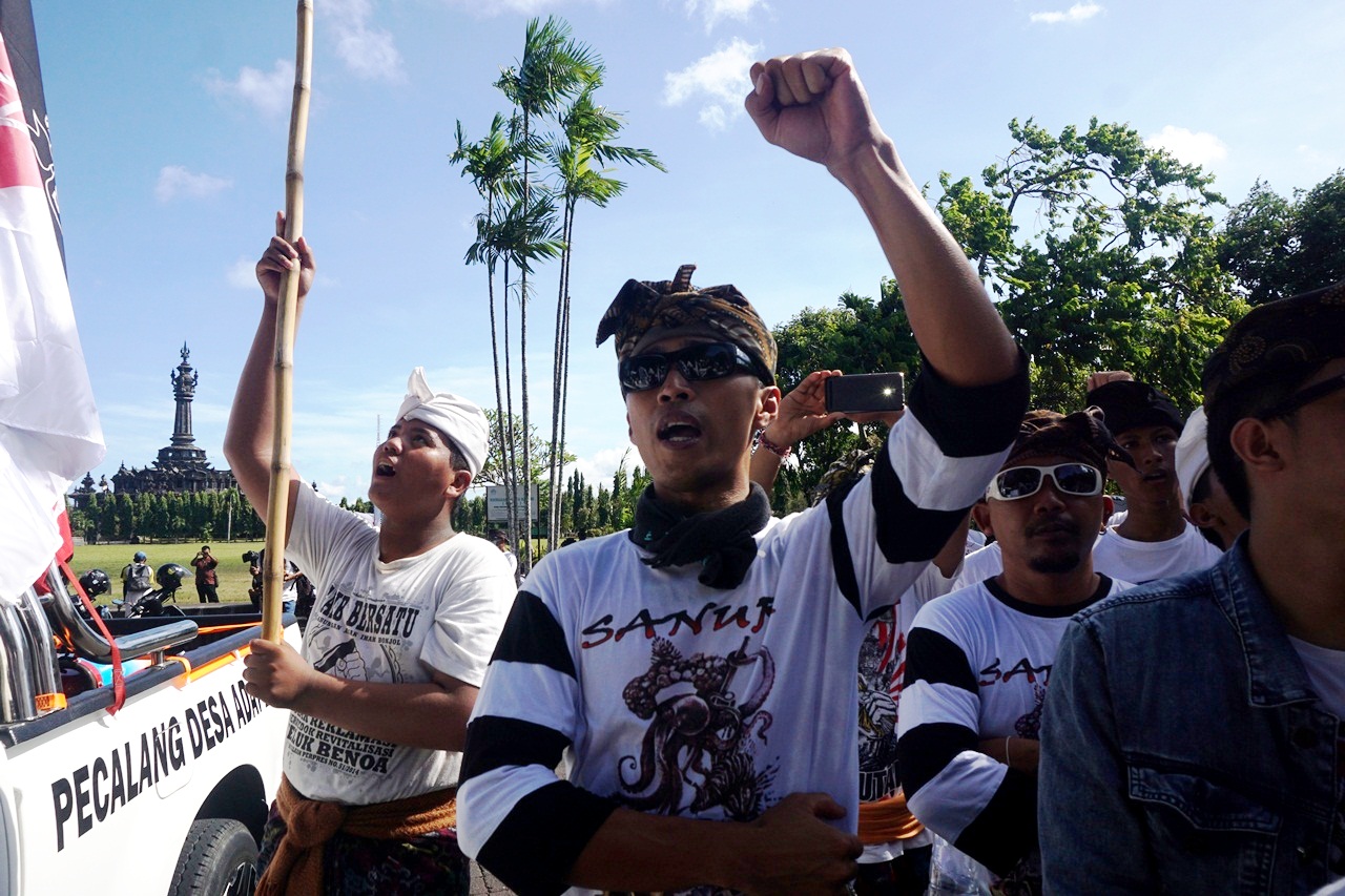 Sementara Wayan Swarsa, Koordinator Pasubayan Desa Adat Tolak Reklamasi selalu menyemangati peserta aksi bahwa suara penolakan ini adalah jalan darma atau kebenaran untuk melindungi laut. Bendesa (pimpinan) Desa Adat Kuta ini menyebut banyak pertemuan internasional terkait lingkungan dihelat di Bali dan harus melihat gejolak yang ada dalam masyarakat terkait rencana reklamasi ini.