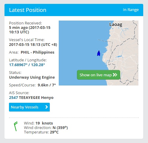 Kapal Calodenia Sky sendiri melakukan perjalanan pelayaran dari New Britain Island pada 25 Februari dan dijadwalkan tiba di Manila pada 14 Maret. Saat ini posisi kapal, seperti dikutip dari marinetraffic.com, berada di perairan Filipina.