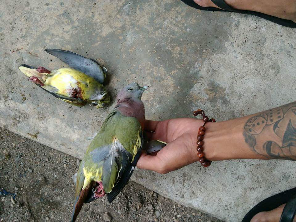 Seorang dengan tato, di bagian pundak dan lengan sebelah kiri, membidikan senapan angin. Picu ditekan, peluru melesat. Tembakan itu kemudian membunuh dua ekor burung. Berdasarkan informasi, aksi tersebut berlangsung di Kabupaten Kepulauan Sangihe, Sulawesi Utara.