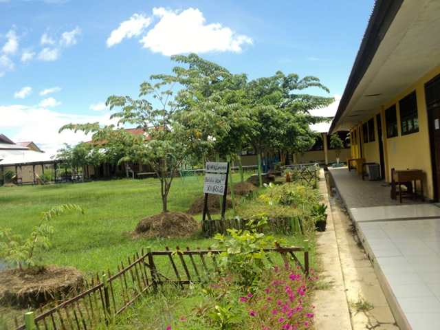 Sekolah ini, katanya, awalnya tak ada pohon. Kala muncul gagasan penghijauan, Dinas Kehutanan Merauke dan Dinas Lingkungan Hidup Merauke, memberi bantuan bibit.