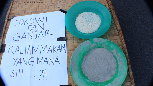 Senin lalu, di depan Istana Negara seorang pelukis, Hardi Danuwijaya, ikut aksi solidaritas Kendeng. Berkaos Che Guavara dengan topi kabaret bintang satu, dia meletakkan kanvas putih di tanah. Sedikit demi sedikit, dia menggoreskan kuas warna pada kanvas itu.