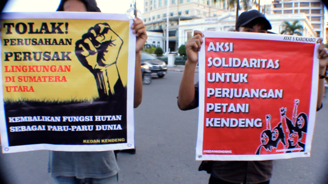 Aksi protes digelar di titik 0 kilometer Kota Medan ini, sebagai protes terhadap pemerintah yang dianggap mengabaikan putusan Mahkamah Agung yang memenangkan gugatan warga Rembang, Jawa Tengah dengan perintah cabut izin lingkungan Semen Indonesia.