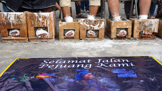 “Aksi ini universal, tetapi simbol bagi masyarakat dalam mempertahankan air, tanah dan hak mereka,” kata Yati Andriyani, Koordinator Kontras.