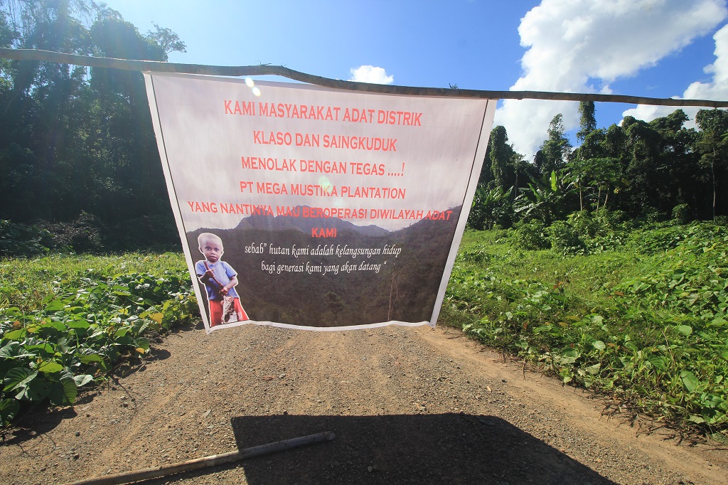 Pagi itu, langit cerah, panas matahari terik membakar kulit. Ratusan warga dari komunitas adat Moi di Kabupaten Sorong, Papua Barat berdatangan ke perempatan jalan masuk ke ibukota Distrik Klaso, menutup jalan sambil membentangkan spanduk, menolak rencana ekspansi perkebunan sawit di wilayah adat mereka.