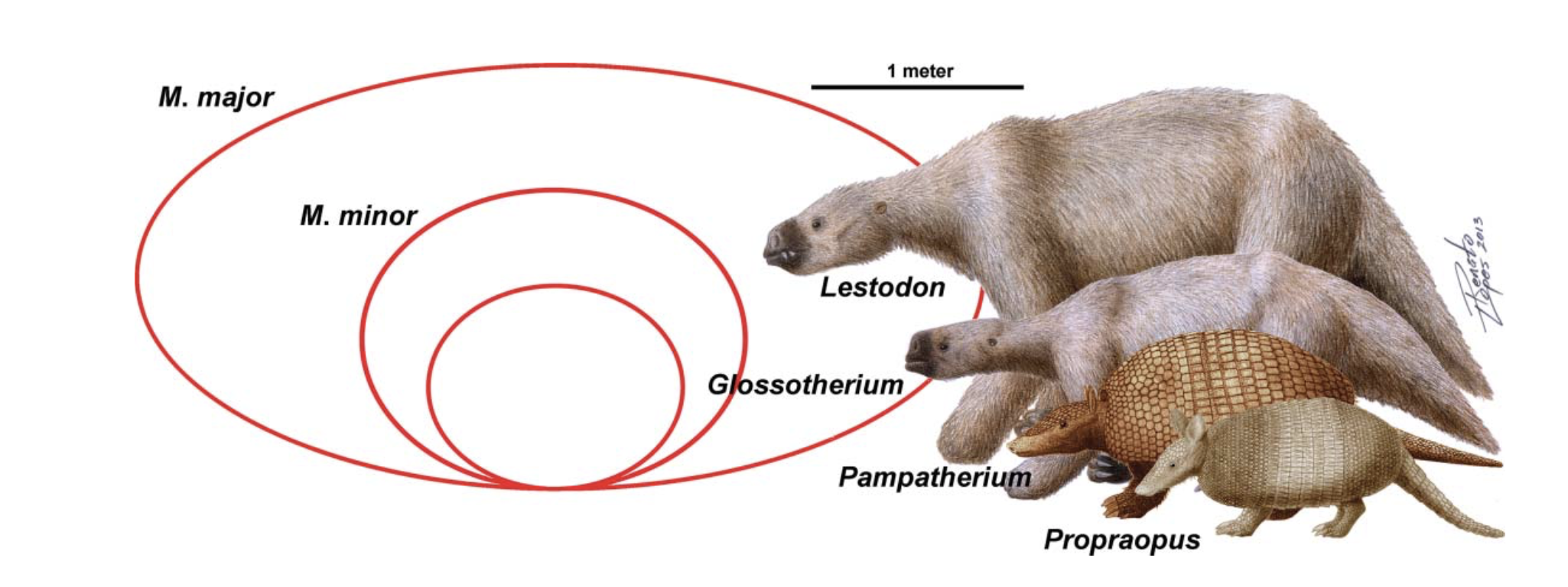 Di dekat Kota Brasil, Porto Alegre, misalnya, Frank dan murid-muridnya menemukan terowongan selebar 1.2 meter yang panjangnya hampir 20 meter. Dinding serta langit-langitnya penuh cakaran kuku. Para ahli meyakini terowongan ini pernah mencapai panjang hingga 65 meter. Meskipun beberapa terowongan telah terisi sedimen, tapi tetap jelas terlihat, dan tergolong sangat kuat.