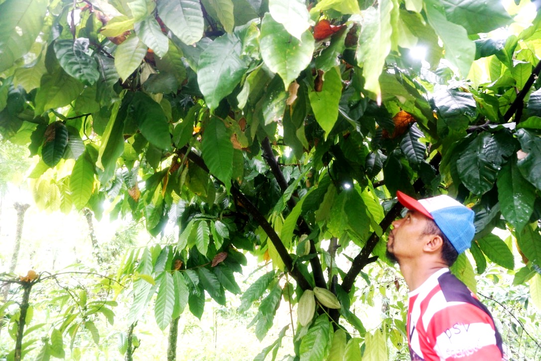 Menggunakan pisau lipat, dia menunjukkan cara menyadap pohon karet atau memotong buah kakao yang sudah hampir matang. Heru bahkan membawa contoh-contoh produk dari kebun yang sudah diolah, seperti kopi dan kakao kering. Dia menerangkan proses pengolahan dari kebun hingga menjadi produk olahan.