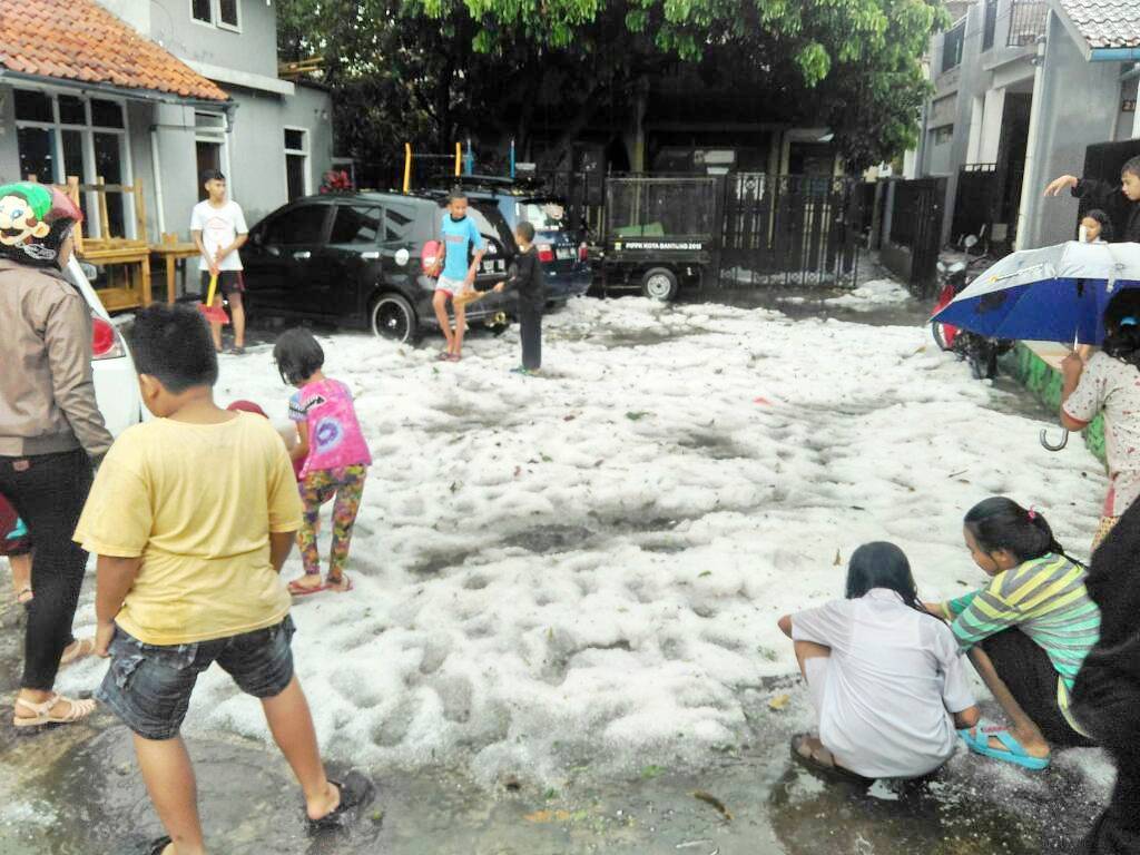 “Tadi memang hujannya disertai angin kencang. Namun ada hujan es. Waktu itu saya mau pulang. Melihat kondisi badai dan hujan es, saya urung dan bertuduh dulu. Banyak es menumpuk tapi sudah mencair lagi,” kata Didin salah satu warga di Jalan Dipenogoro Kota Bandung.