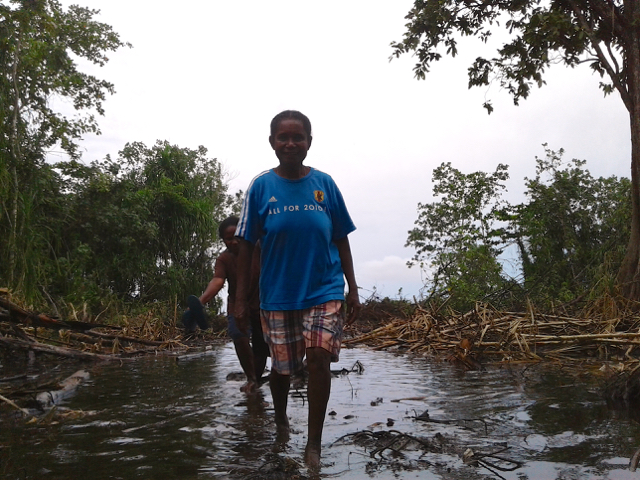 “Kami kadang dimarah suami. Kami bilang mangrove kami tanam itu nanti pele (menghalangi-red) kita dari tsunami,” kata Lea Dubri (37). Lea satu-satunya perempuan kelompok itu yang berumur kepala tiga.