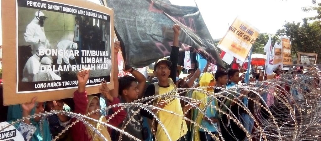 Ratusan warga Desa Lakardowo, Kabupaten Mojokerto, mendatangi Surabaya. Hari itu, Rabu (26/4/2017), mereka menggelar aksi long march untuk menyuarakan dugaan pencemaran limbah B3 kepada Gubernur Jawa Timur. Aksi ini, merupakan lanjutan perjuangan dalam kurun 6 tahun belakangan. Di Surabaya, warga berjalan kaki sejauh 6 kilometer dan melawan panas matahari. Begitu tiba di depan kantor Gubernur, … Lanjutkan membaca 6 Tahun Berjuang Atasi Limbah B3, Warga Lakardowo Minta Perhatian Gubernur Jatim
