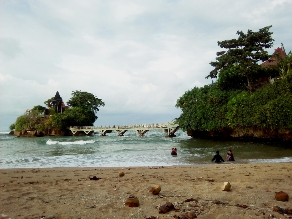 Pasir putih-kecokelatan menghampar di pantai Balekambang. Ombak berdebur keras. Sekitar 200 meter dari darat, jajaran karang menghalanginya. Ombak itu lalu pecah menjadi gelombang berbuih.
