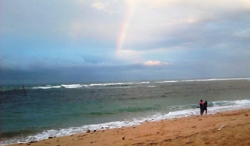 Di tepi pantai, beberapa papan memberi peringatan: “Dilarang Mandi di Laut, Ombak Ganas”. Peringatan yang tak cukup efektif. Nyatanya, banyak wisatawan dengan gembira menyambut ganasnya ombak.