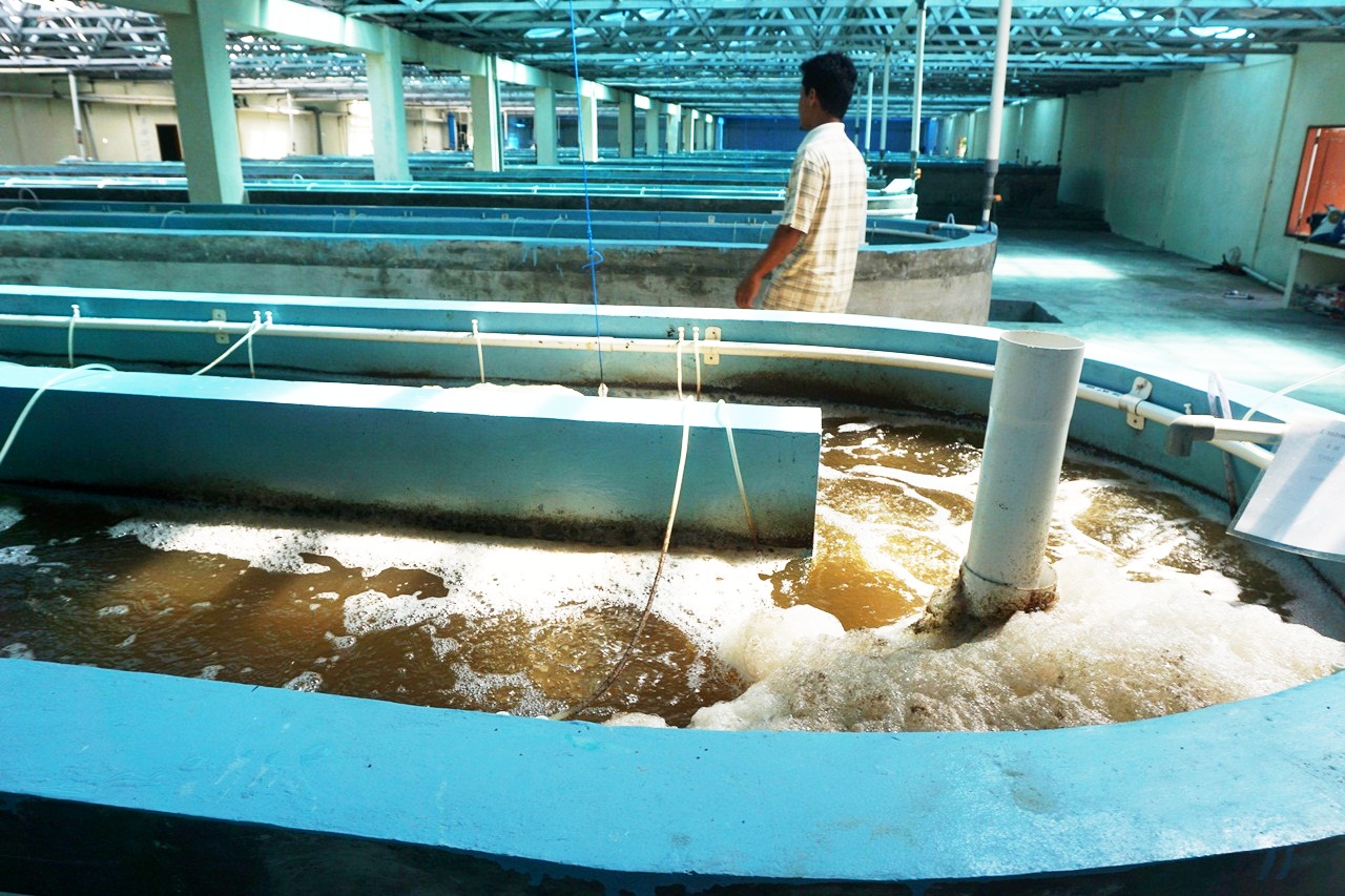 Area terluas adalah fasilitas bak permanen kapasitas 30 dan 60 meter kubik atau bak multiplication center (MC). Sebelum masuk area pembenihan dan pembesaran, pengunjung diwajibkan menggunakan jubah putih dan sepatu bot plastik. Sebelum masuk area, melewati prosedur biosecurity untuk menghindari kontaminasi penyakit terutama virus. Misalnya bot direndam desinfektan, tangan dicuci sabun lalu disemprot alkohol.