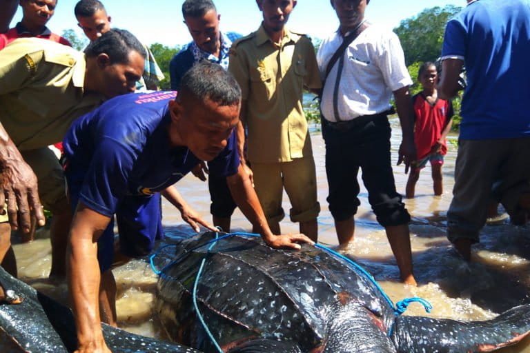 Penyu Belimbing yang Terjerat Jaring Itu Akhirnya Dibebaskan