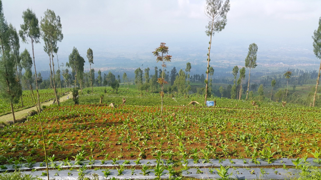 Berkendaraan roda dua, kanan dan kiri jalan terlihat cabai, tomat, bawang, terong dan kopi arabika. Tembakau berukuran 20-100 centimeter tumbuh jadi selingan sayur. Ada juga lahan khusus tembakau, namun di pinggir kopi.