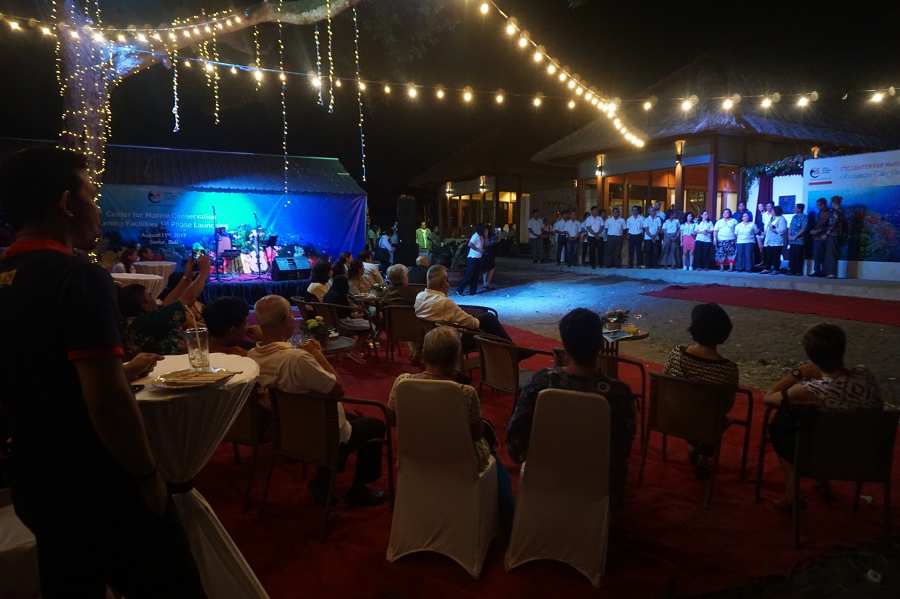 Di halaman utama, puluhan undangan, donatur, pengurus yayasan, dan stakeholder CTC lainnya berkumpul mendengarkan rencana pengembangan pusat konservasi laut ini di masa depan. “Kita harus menemukan cara pembangunan dan konservasi agar berjalan seimbang. Pembangunan keberlanjutkan memperhatikan keseimbangan jangka panjang dan pendek. Konservasi dan pembangunan bisa berjalan seimbangan,” ujar George Tahija, Ketua Dewan Pengawas CTC dalam acara pembukaan fasilitas pelatihan. George dan istrinya berkali-kali disebut orang yang paling berperan dalam pembentukan Yayasan CTC pada 2010.