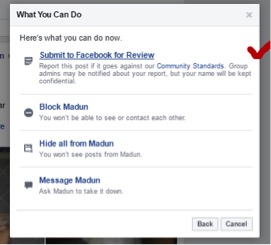 1. Klik “tanda panah kebawah” pilih opsi “Report Post”.