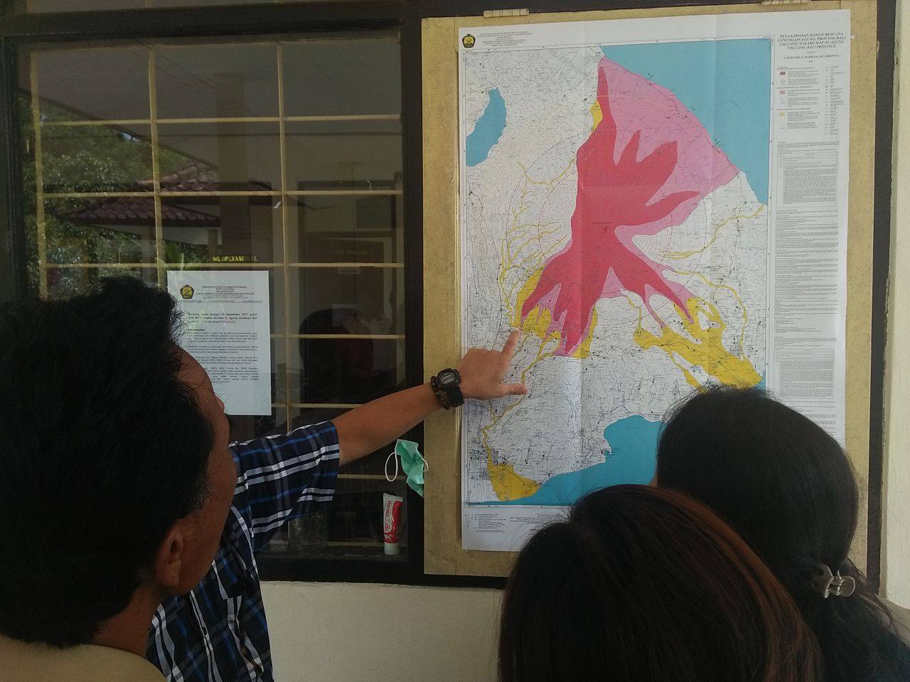 Warga terus berdatangan ke pos ini untuk ikut melihat langsung dari radius aman, mereka juga tertarik membaca peta dampak letusan dan informasi lainyang tersedia. Banyak yang ingin memastikan apakah desanya termasuk di radius berbahaya jika terjadi erupsi.