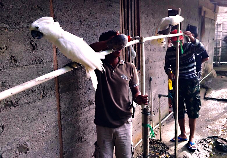 Investigasi Organisasi Protection of Forest & Fauna (ProFauna) Indonesia pada November 2016 hingga Januari 2017 mencatat, kurang lebih 3.000 kakatua putih (Cacatua alba), kasturi Ternate (Lorius garrulus), dan bayan (Ecletus roratus) ditangkap di Halmahera Selatan (Halsel). Mereka lalu diselundukpan ke Pulau Jawa, Sulawesi hingga Filipina.