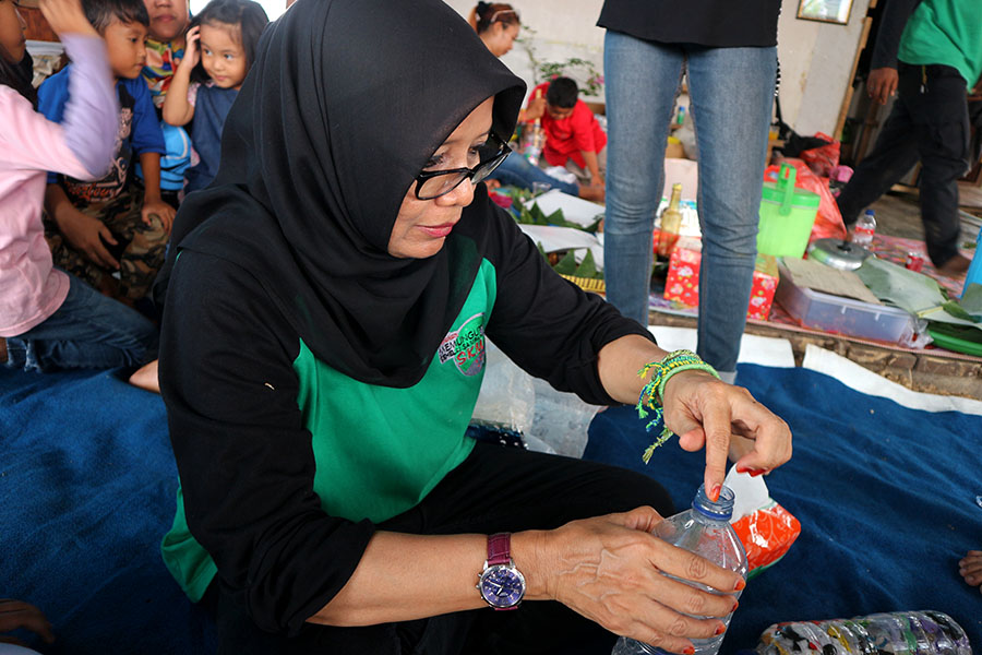 Dikatakan Naniek, limbah plastik merupakan molekul poliester yang sulit diurai secara alami. Dibutuhkan kreativitas manusia untuk mendaur ulang, menjadikannya sesuatu yang berguna. “Ecobrick adalah bata ramah lingkungan. Ecobrick dibuat dengan cara memasukan plastik-plastik bekas ke dalam botol bekas hingga padat dan botol menjadi keras. Rencananya, sebagian dinding sekolah Karang Mumus akan dibuat menggunakan ecobrick,” katanya.