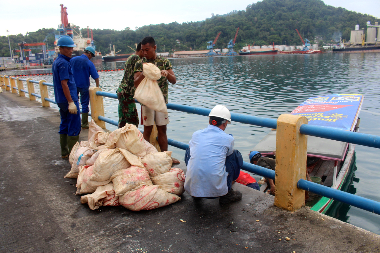 Karena areal terdampak kelolaan PT Pelindo Cabang Teluk Bayur, otoritas segera mengerahkan dua oil boom, masing-masing sepanjang 250 meter. Tumpahan minyak banyak khawatir mengganggu aktivitas pelabuhan. Selain tergenang di permukaan laut, tumpahan juga melekat di batu karang di kawasan itu.