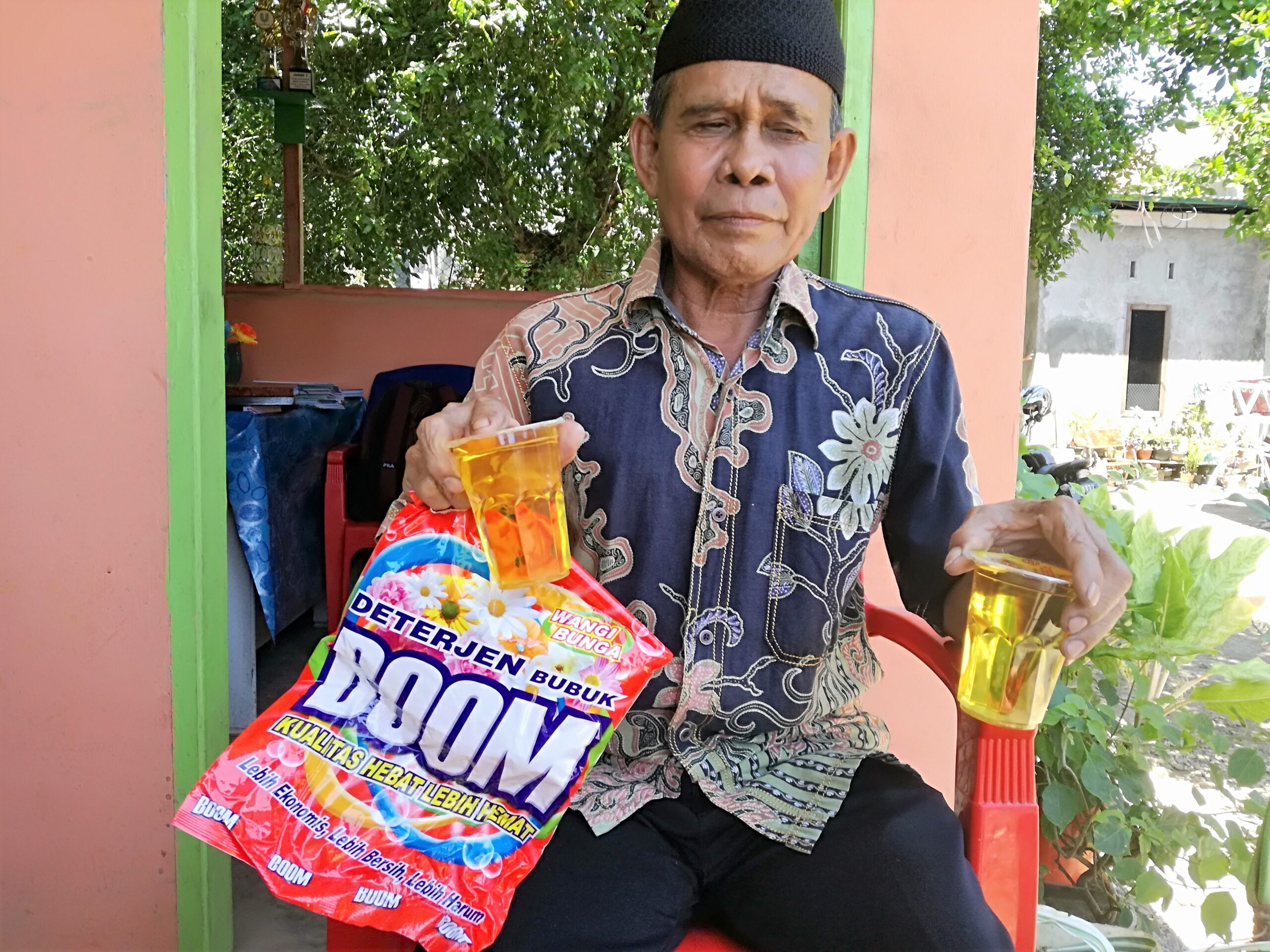 Assingke (55) tersenyum sumringah. Kedua tangannya memegang minyak goreng dan sabun cuci bubuk. Bahan kebutuhan rumah tangga ini adalah hasil dari pertukaran sampah di Bank Sampah Unit Sehati RW 4, Kelurahan Parangloe, Kecamatan Tamalanrea, Makassar, Sulawesi Selatan.