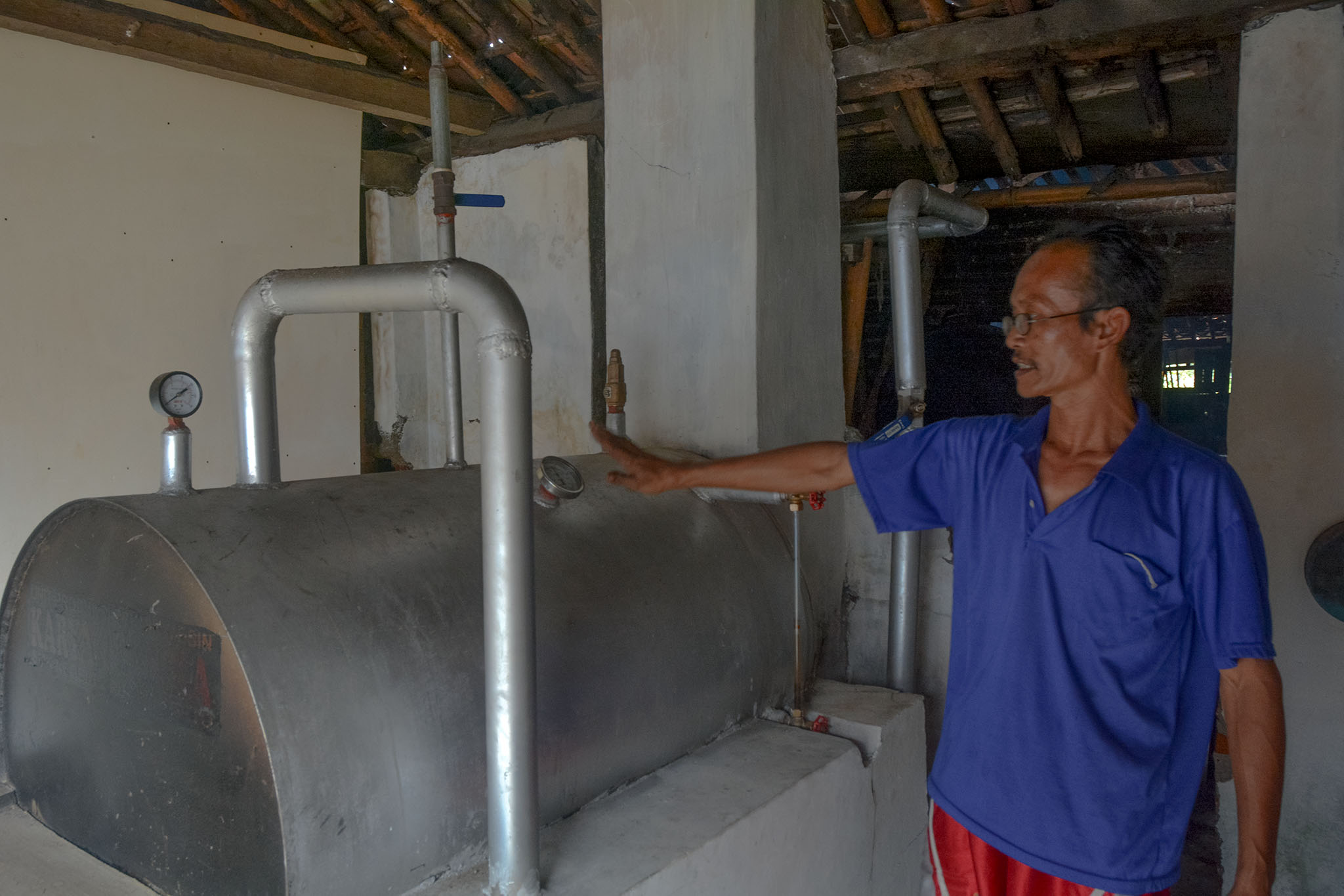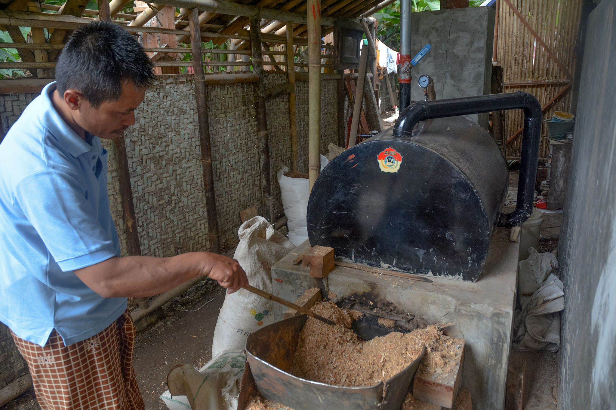 Lalu benarkah ketel uap tersebut bisa mengurangi konsumsi kayu bakar? “Benar,” kata Casan yang menjadi anggota salah satu Kelompok Sari Delai, Desa Kalisari. Menurutnya, sebelum ada ketel uap kebutuhan bahan bakar yang merupakan serbuk kayu atau serutan limbah kayu membutuhkan 20 kantong.