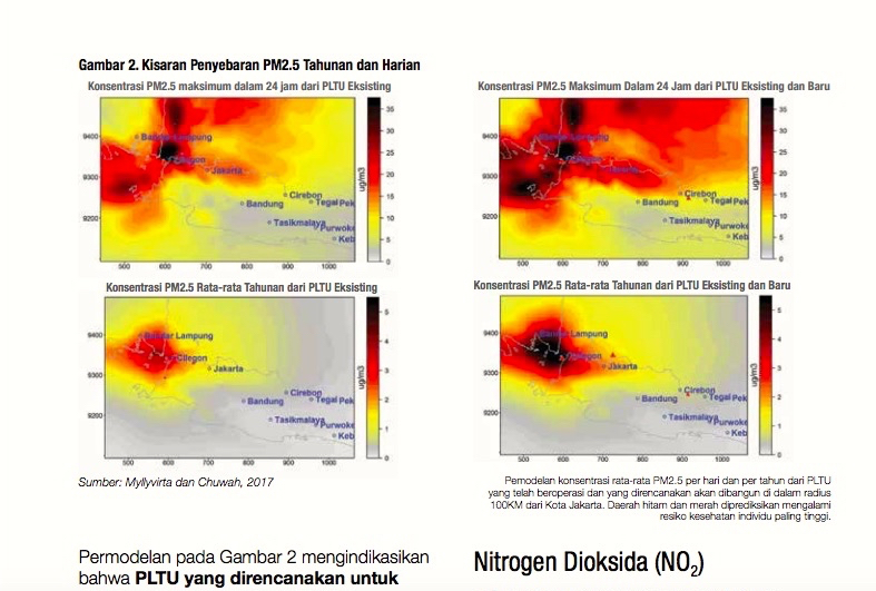 “Hasilnya mengindikasikan emisi gabungan PLTU yang telah beroperasi. Yang baru akan memiliki dampak besar pada peningkatan kadar polusi di kota-kota yang berlokasi di sebelah utara dan barat pembangkit listrik.”