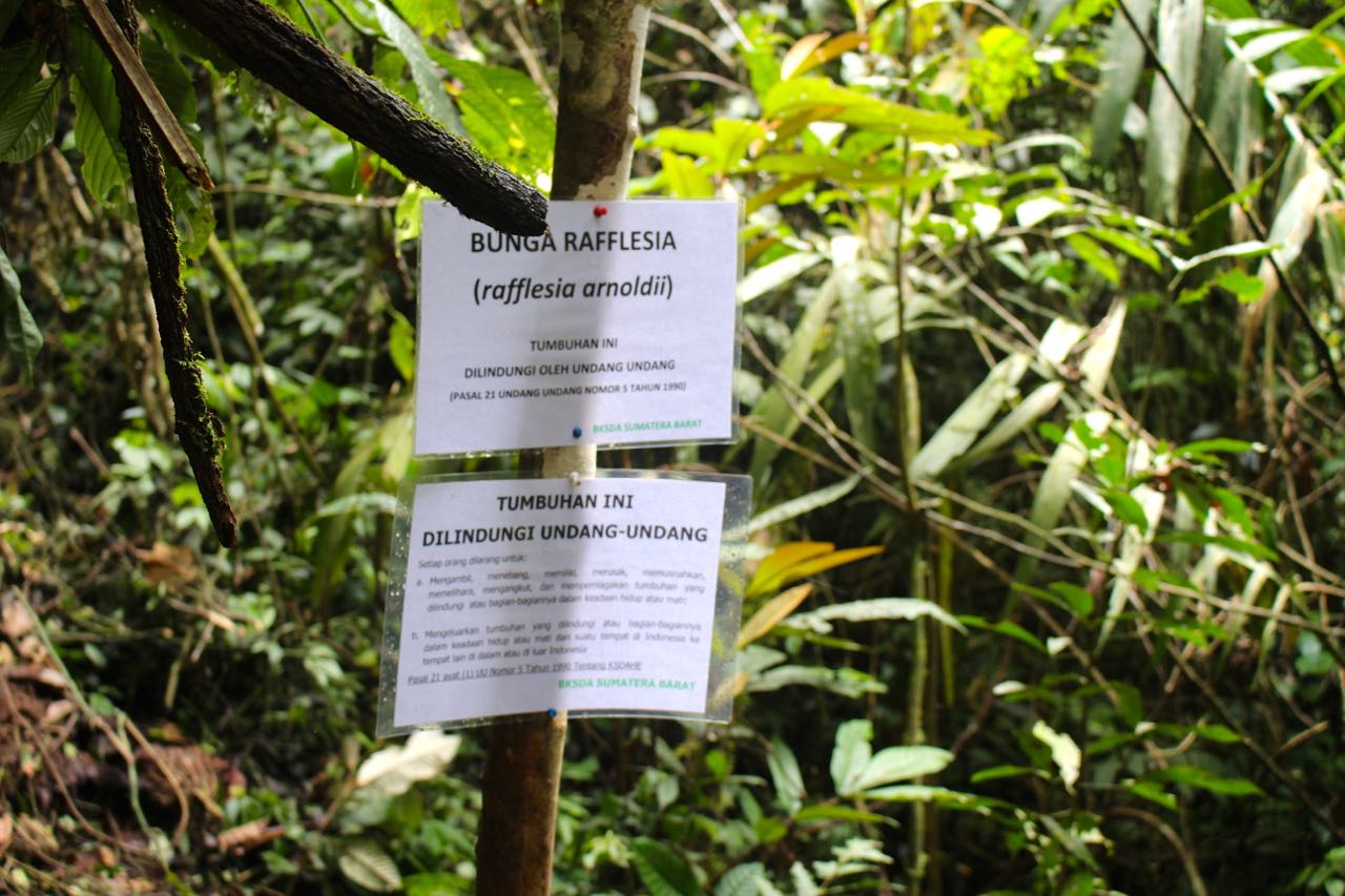 “Bunga rafflesia. Tumbuhan ini dilindungi oleh Undang-undang”. Begitu bunyi imbauan itu.