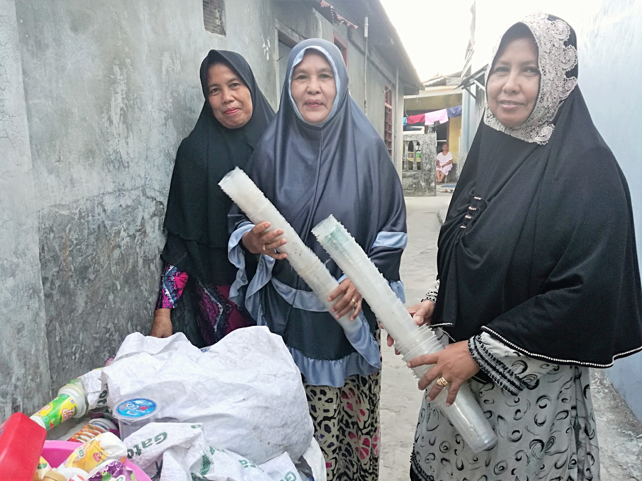 “Kita kumpulkan segala macam sampah. Paling banyak adalah sampah plastik. Ibu-ibu anggota kelompok semuanya turun cari sampah, termasuk saya. Malah sering saya kumpulkan sampah lebih banyak. Saya yang membeli sampah dari mereka,” ujar Marawiya.