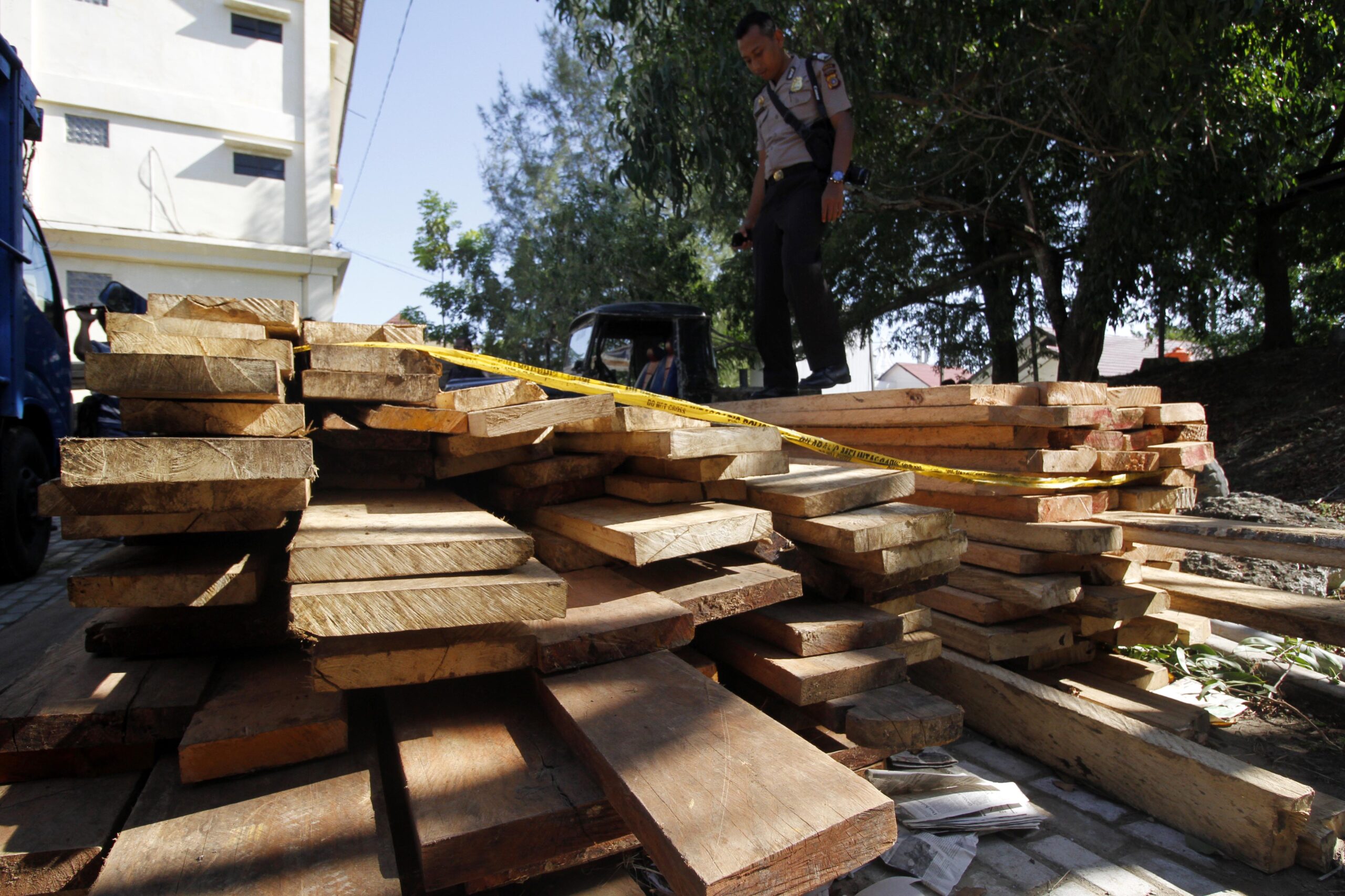 Banner: Polisi Daerah Aceh menyita sekitar enam meter kubik kayu ilegal yang di tebang di hutan lindung di Kecamatan Leupung, Kabupaten Aceh Besar, Provinsi Aceh, 25 Februari 2016 silam. Foto: Junaidi Hanafiah/Mongabay Indonesia