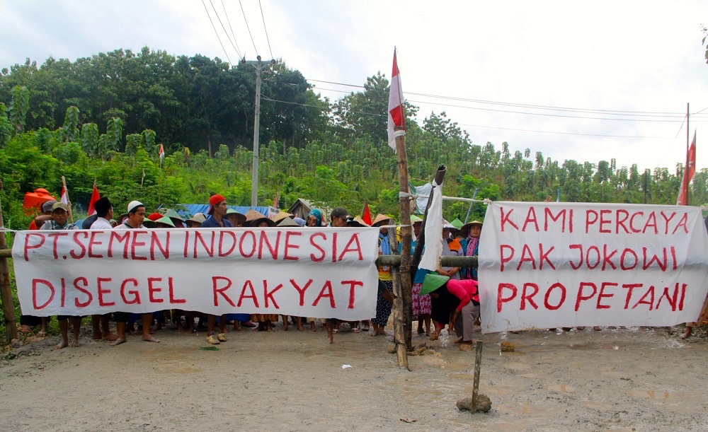 Keterangan foto utama: Warga tolak tambang dan pabrik PT Semen Indonesia di Pegunungan Kendeng, karena mengancam kehidupan mereka, salah satu sumber air. Amdal penyusun ditemukan bermasalah, seperti tak memasukkan data goa, dan sumber mata air dengan benar. Wargapun menang gugatan dan Mahkamah Agung memutuskan pemerintah cabut izin lingkungan PT Semen Indonesia. Walaupun, putusan MA ini seakan tak bergigi karena Pemerintah Jateng, keluarkan izin lingkungan baru, dengan amdal lama. Foto: Tommy Apriando/ Mongabay Indonesia
