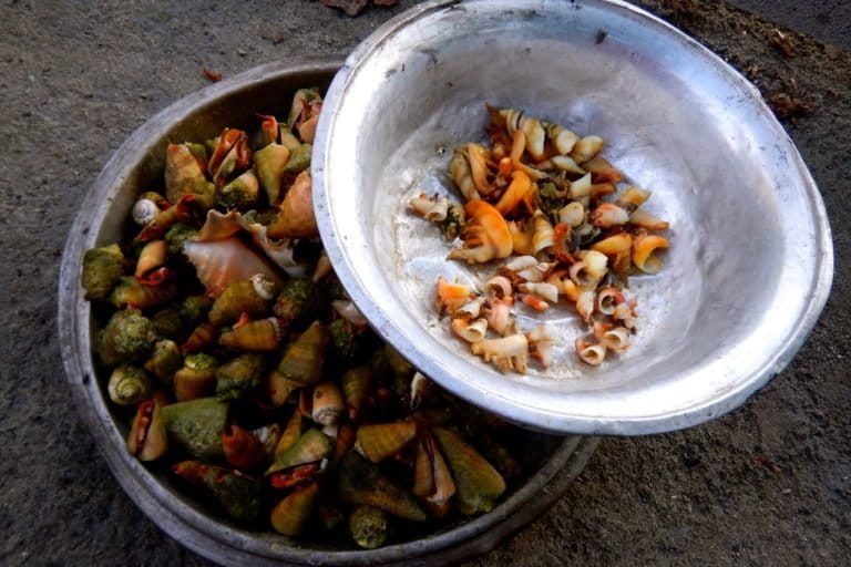 Sebagai layaknya penduduk pulau, sumber protein hewani bagi masyarakat pantai memang berasal dari laut. Tidak aneh penduduk mengumpulkan ikan maupun jenis-jenis moluska untuk dikonsumsi. Tidak hanya untuk dimakan keluarga, berbagai jenis hasil laut mereka jual ke pasar.