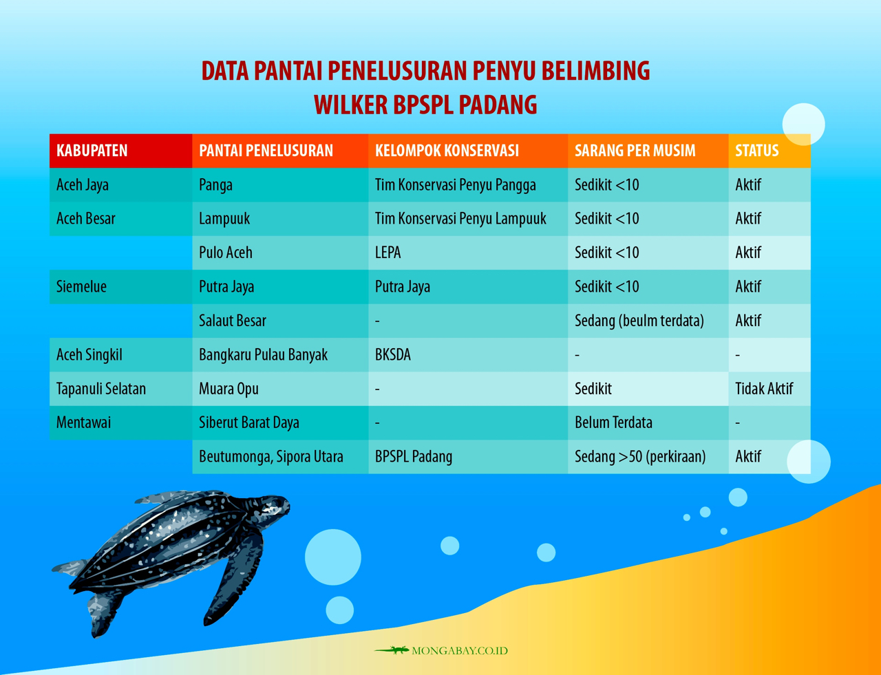 Foto utama: Tukik penyu belimbing di Mentawai. Foto: Balai Pengelolaan Sumberdaya Pesisir dan Laut / Mongabay Indonesia