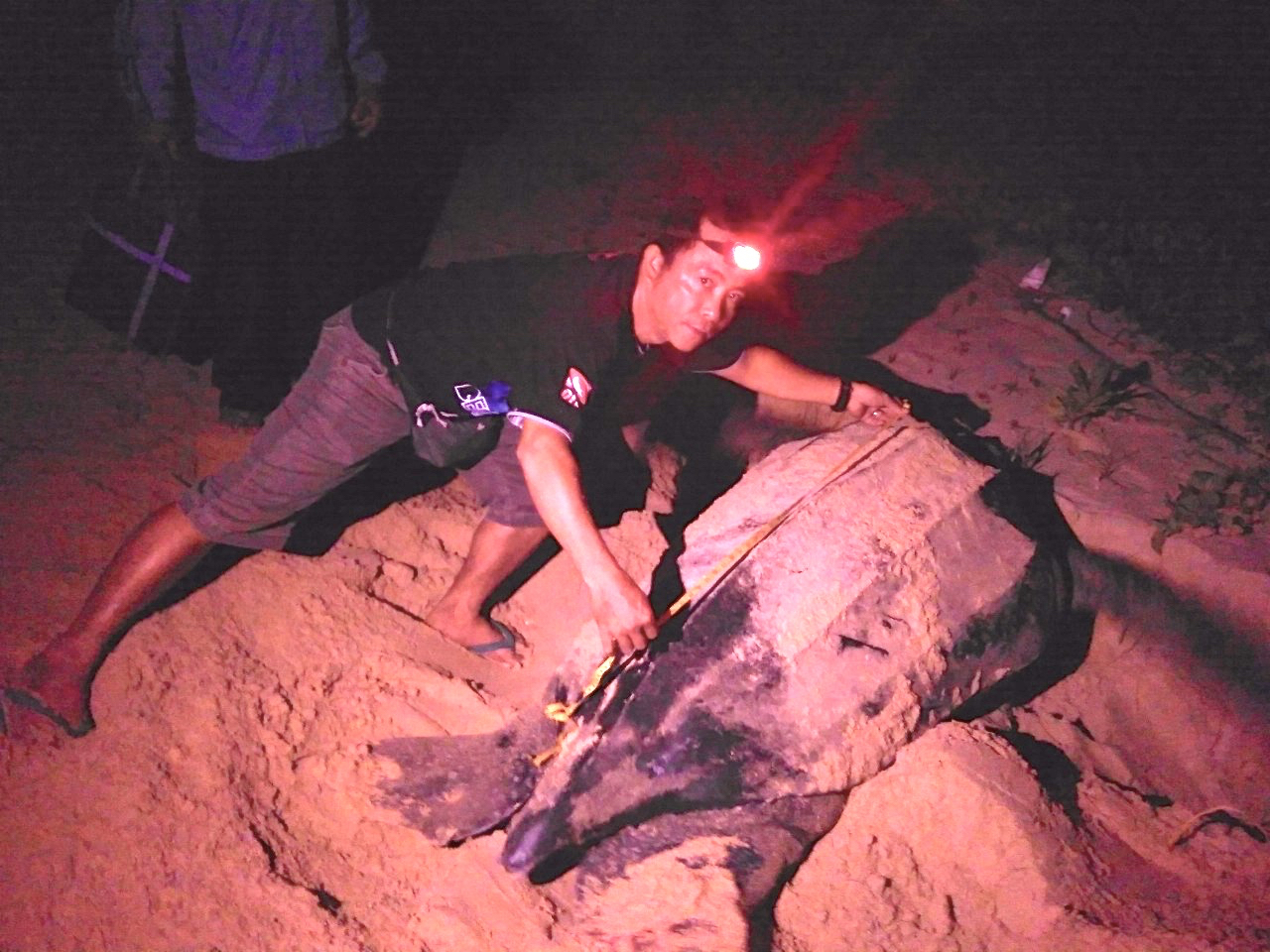 Setelah penemuan itu, tim BPSPL dan RTF melanjutkan monitoring pada malam hari. Setelah penjelajahan, tepat pukul 22.00, ditemukan penyu belimbing naik dan bertelur, dengan panjang kerapas 152 sentimeter dan lebar track 202 sentimeter.