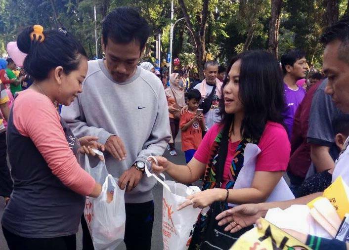 Sebanyak 75 anggota ICS melakukan aksi rampok tas kresek para pengunjung, menukarnya dengan tas kain yang dapat dipakai berulang. “Selama proses penukaran, dilakukan juga edukasi mengapa kita harus diet tas kresek. Pada aksi ini, kami bagikan 300 tas kain gratis kepada warga,” jelas Irene Susane dari ISC.