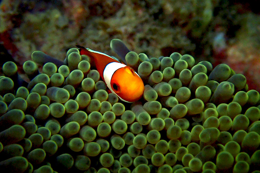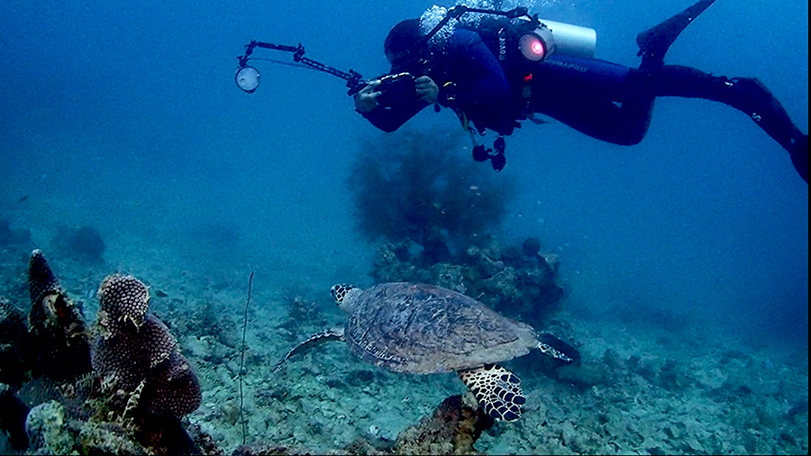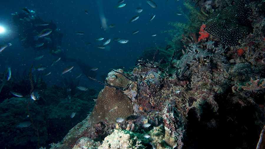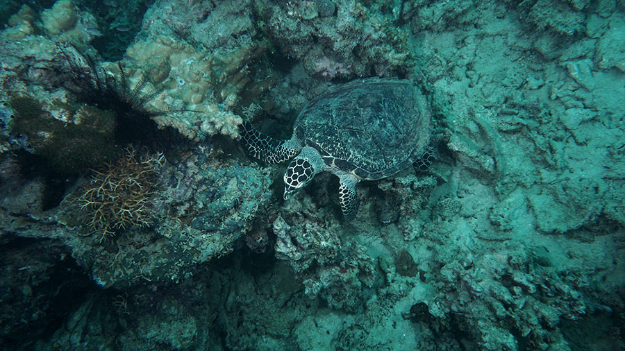 Bidikan kamera juga menyoroti kerusakan terumbu karang. Sembari menjelajah, kami menemukan penyu sisik (Eretmochelys imbricate), ikan giru (Amphiprioninae) dan soft koral yang masih dalam kondisi baik.