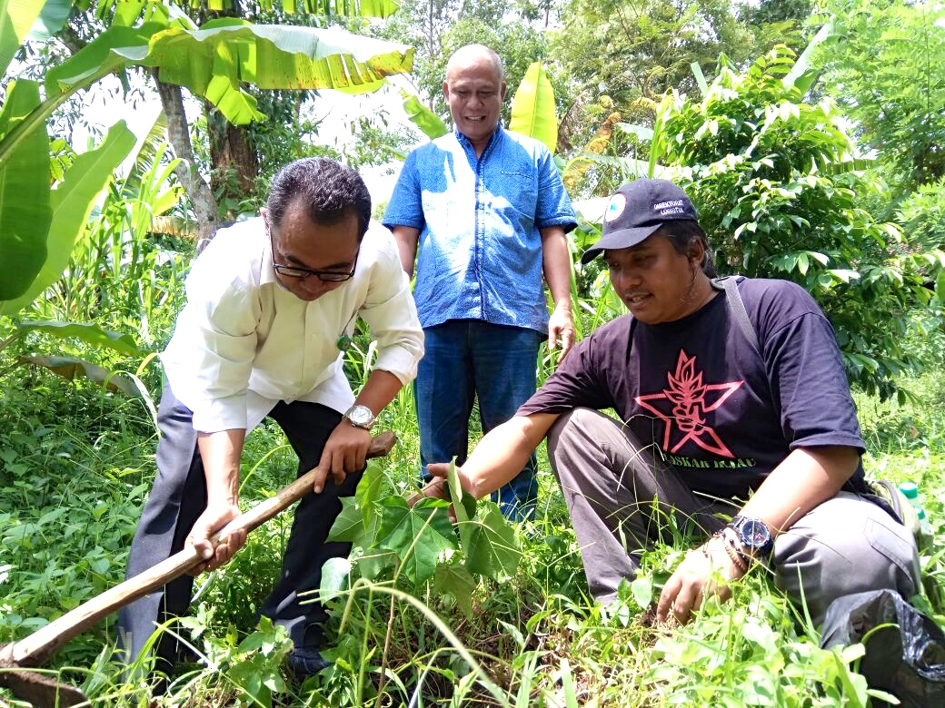 Koesnadi juga anggota Tim Penggerak Percepatan Perhutanan Sosial (TP2PS) diskusi dengan relawan Laskar Hijau soal kasus ini dan mencari solusi bersama. Selesai diskusi, Koesnadi menanam pohon kemiri bersama relawan di sekitar posko.