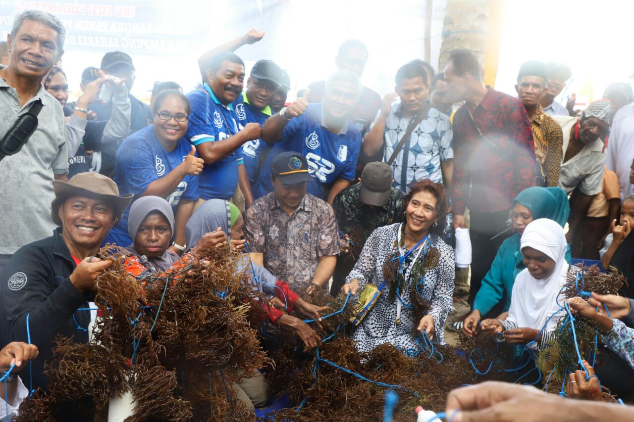 “Panen raya ini diharapkan akan menjadi awal menuju ekonomi masyarakat yang lebih baik. Saya ingin rumput laut ini menjadi alternatif usaha dan secara langsung meningkatkan pendapatan masyarakat di sini,” ucap Susi di hadapan pembudidaya rumput laut.
