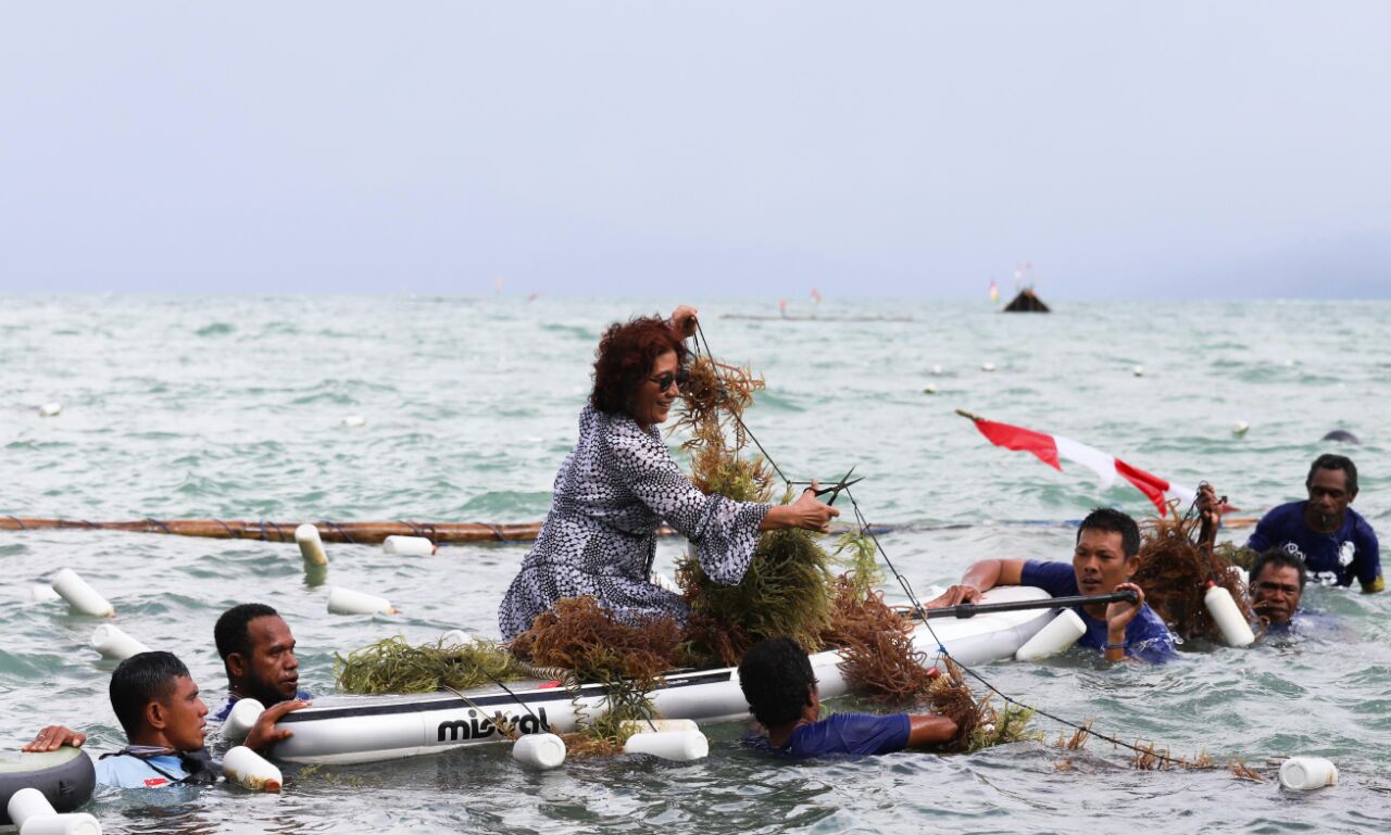 Foto utama : Menteri Perikanan dan Kelautan Susi Pudjiastuti saat panen rumput laut di perairan kampung Saharei Distrik Fakfak Timur Kabupaten Fakfak, Papua Barat pada Jumat (23/3/2018). Foto : Handika Rizki Rahardwipa/Humas KKP/Mongabay Indonesia