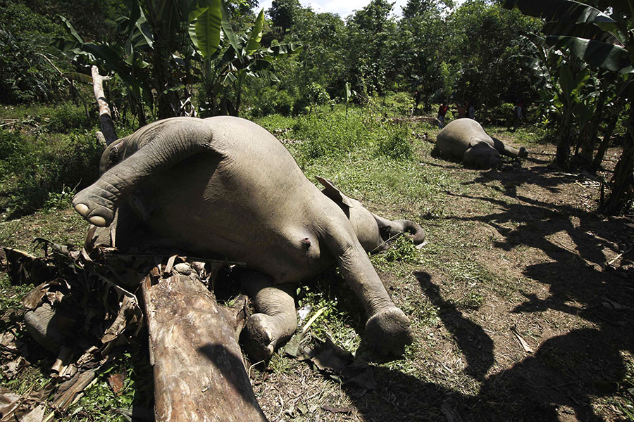 Gajah sumatera mati akibat tersetrum listrik yang dipasang oleh petani di Seumanah Jaya, Kabupaten Aceh Timur