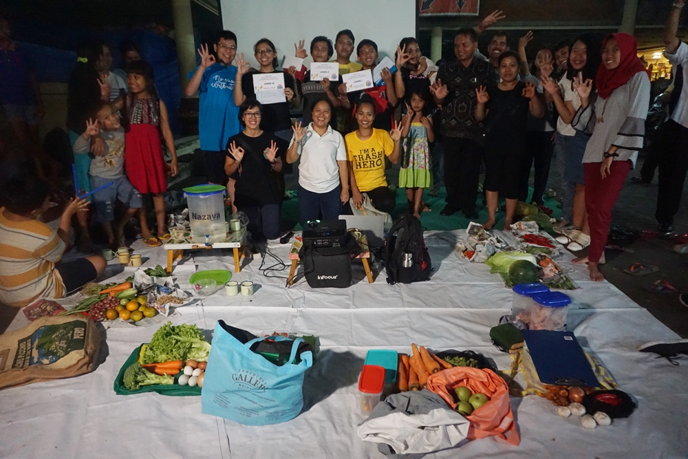 Peserta lain adalah pasangan muda yang membawa bayinya mengelilingi pasar. Adi menggendong bayi perempuannya sambil bawa tas berisi bawang belanjaan dan Kadek, istrinya dengan gesit memilih belanjaan bahan baku aneka sayur, bumbu, buah, dan daging sambil bertanya asal usul produksinya pada pedagang yang bengong dengan polah keduanya. Mereka memanfaatkan koran bekas sebagai pembungkus belanjaan karena tak memiliki kontainer-kontainer wadah.