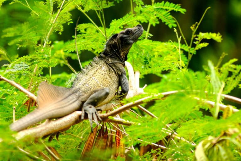 Pertengahan Juni 2018, udara panas, matahari menyengat. Di sisi tebing tanah sungai dengan beberapa rimbun pohon, di Desa Cimpu dan Suli, Kecamatan Suli, Kabupaten Luwu, Sulawesi Selatan, salah satu kadal terbesar tampak sedang beristirahat. Merapatkan badan di ujung tangkai, di akar yang menyembul dan pula di batang pohon.