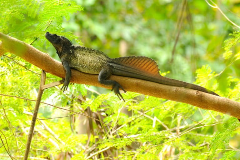 Namanya, soa-soa layar (Hydrosaurus amboinensis) dengan nama lokal piccara. Mendekatinya harus mengendap. Biasa suara berisik membuat sang kadal cepat berlari. Di jarak sekitar 10 meter, kadal itu menoleh dan mulai mengawasi. Kepalanya bergoyang naik turun, seolah mengangguk. Saat saya bergerak lebih dekat, kadal itu membuang diri ke aliran sungai. Menyelam dan muncul di sisi lain sungai.