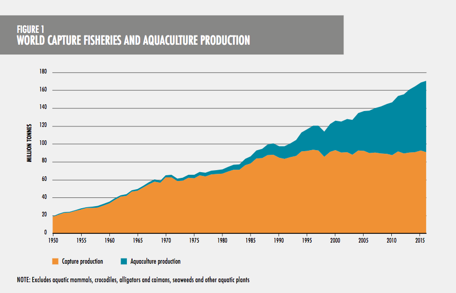 FAO kembali menerbitkan laporan 2 tahunan bertajuk “The State of World Fisheries and Aquaculture: Meeting the Sustainable Development Goals” (2018). Di dalam laporan ini, disebutkan bahwa produksi perikanan dunia mengalami lonjakan volume, dari 167,7 juta ton (2015) menjadi 170,9 juta ton (2016). Dari jumlah ini, 40,34 juta nelayan menyumbang 90,9 juta ton dan selebihnya dikontribusikan oleh 19,3 juta pembudidaya ikan di dunia.