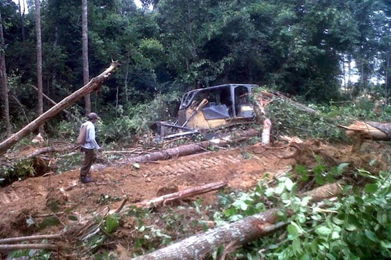 Keterangan foto utama: Pemandangan hutan rimba Komunitas Adat Laman Kinipan, yang sudah jadi kebun sawit…One Map, apakah bisa memberikan kepastian wilayah-wilayah adat mereka? Foto: dokumen Laman Kinipan