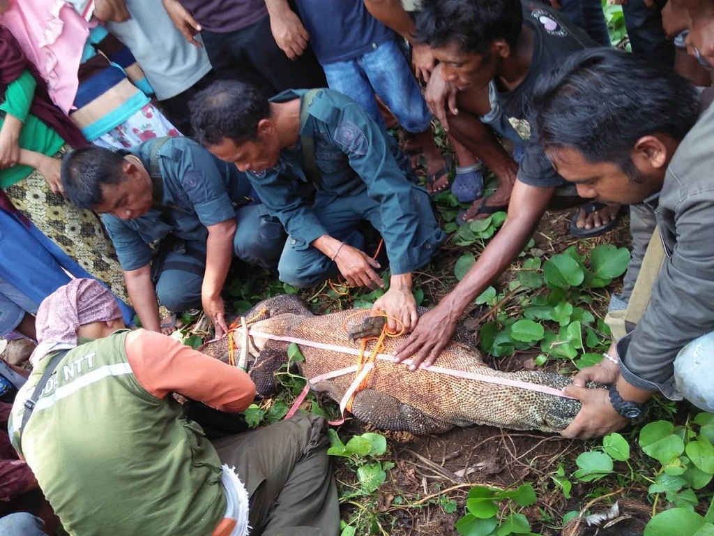 Penangkapan ini dilakukan karena masyarakat khawatir kehadiran komodo tersebut di sekitar perkampungan.