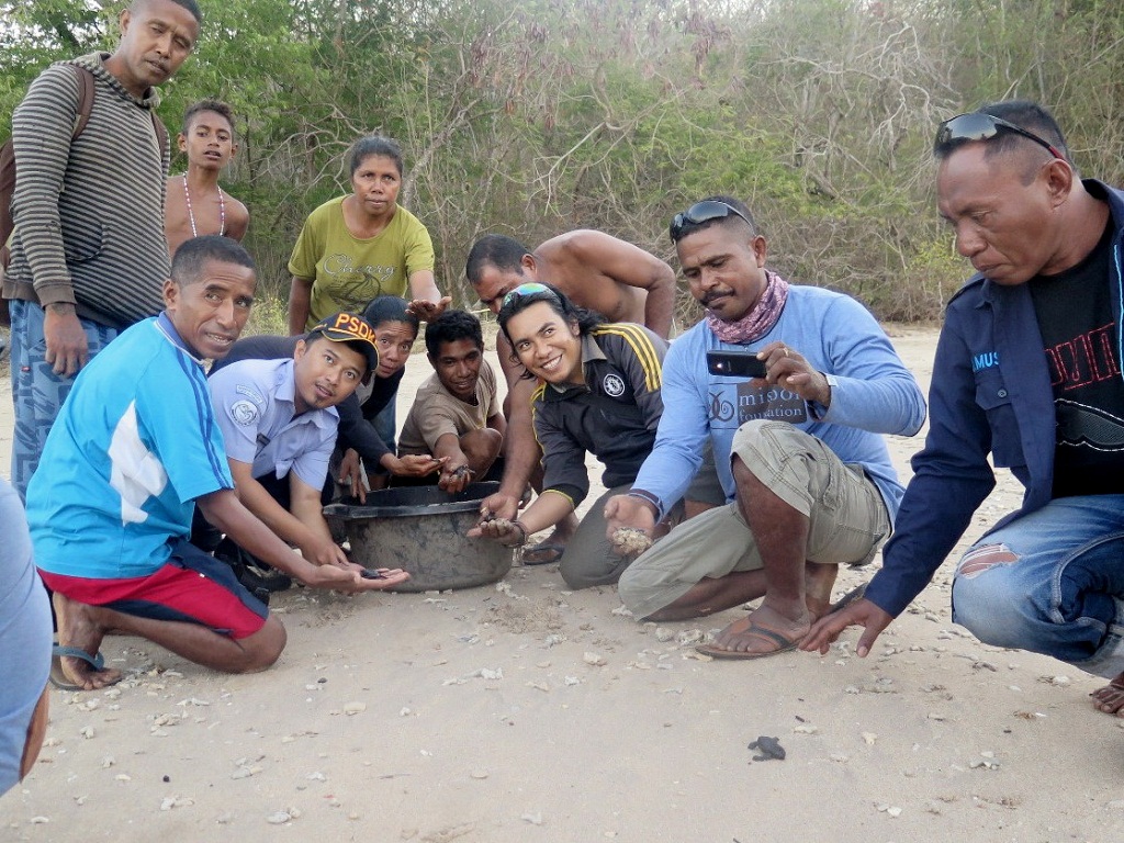 Tim yang terdiri dari Dinas Perikanan Flotim, Satwas SDKP Flores Timur, WCS dan Misool Baseftin langsung menuju ke lokasi penyu bertelur bersama nelayan dan perangkat desa.